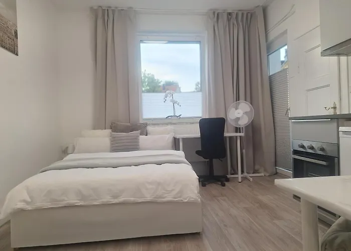 Das 22 m^2 große Studio Apartment Mit Balkon 7 in Essen befindet sich etwa 2 Kilometer von der Erlöserkirche und ca. 7 Kilometer vom Eisenbahnmuseum Bochum entfernt. Dieses Apartment bietet Ausblicke auf den Innenhof.